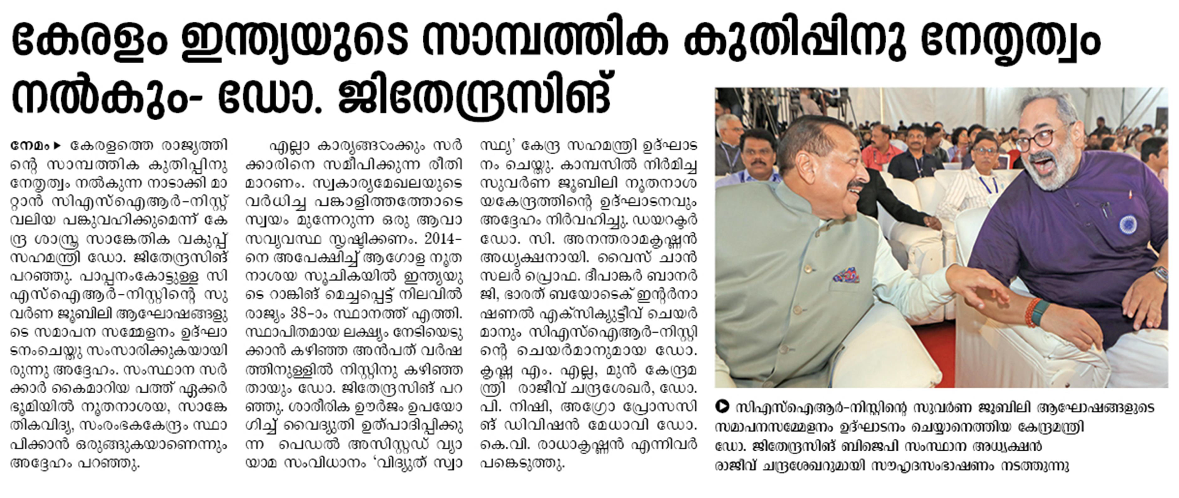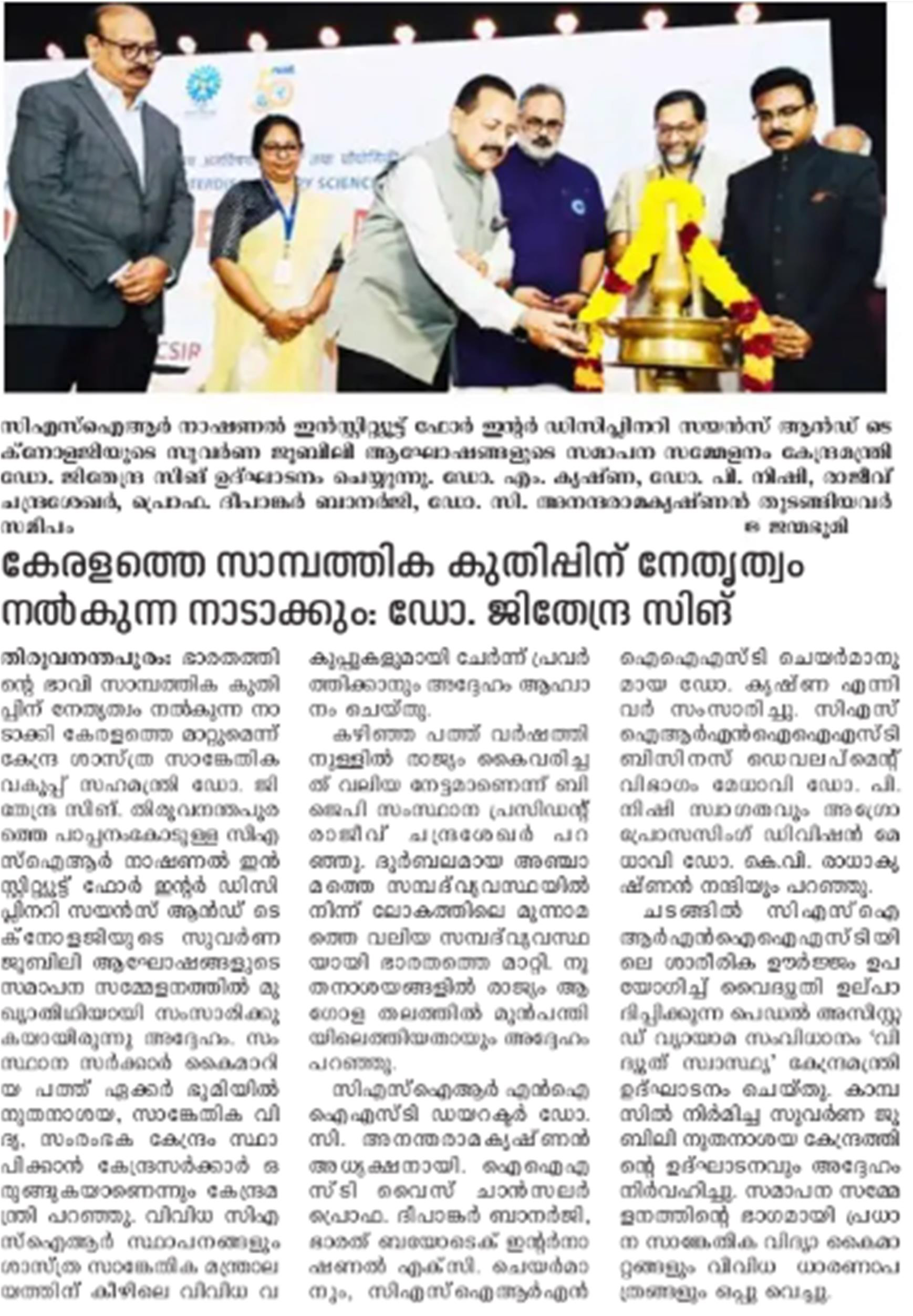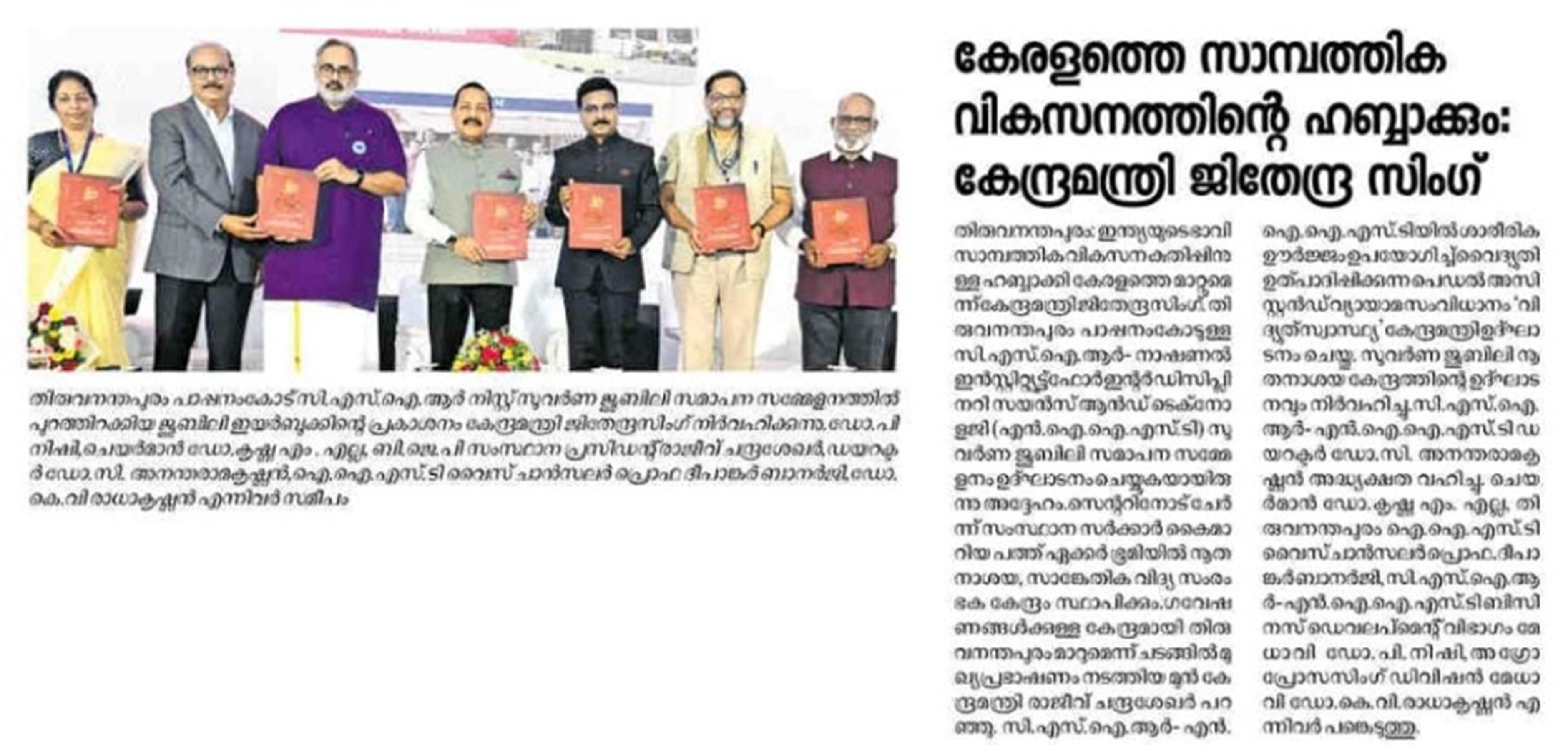 News about CSIR-NIIST appeared in newspaper or popular magazines